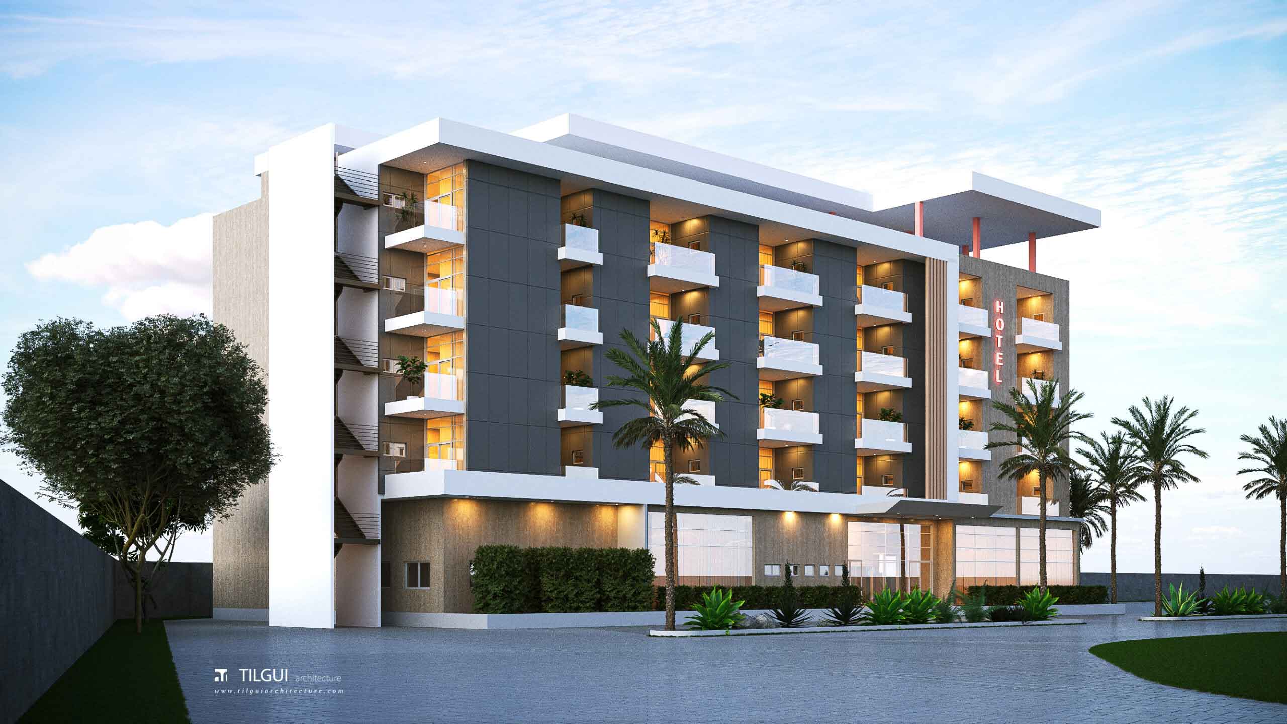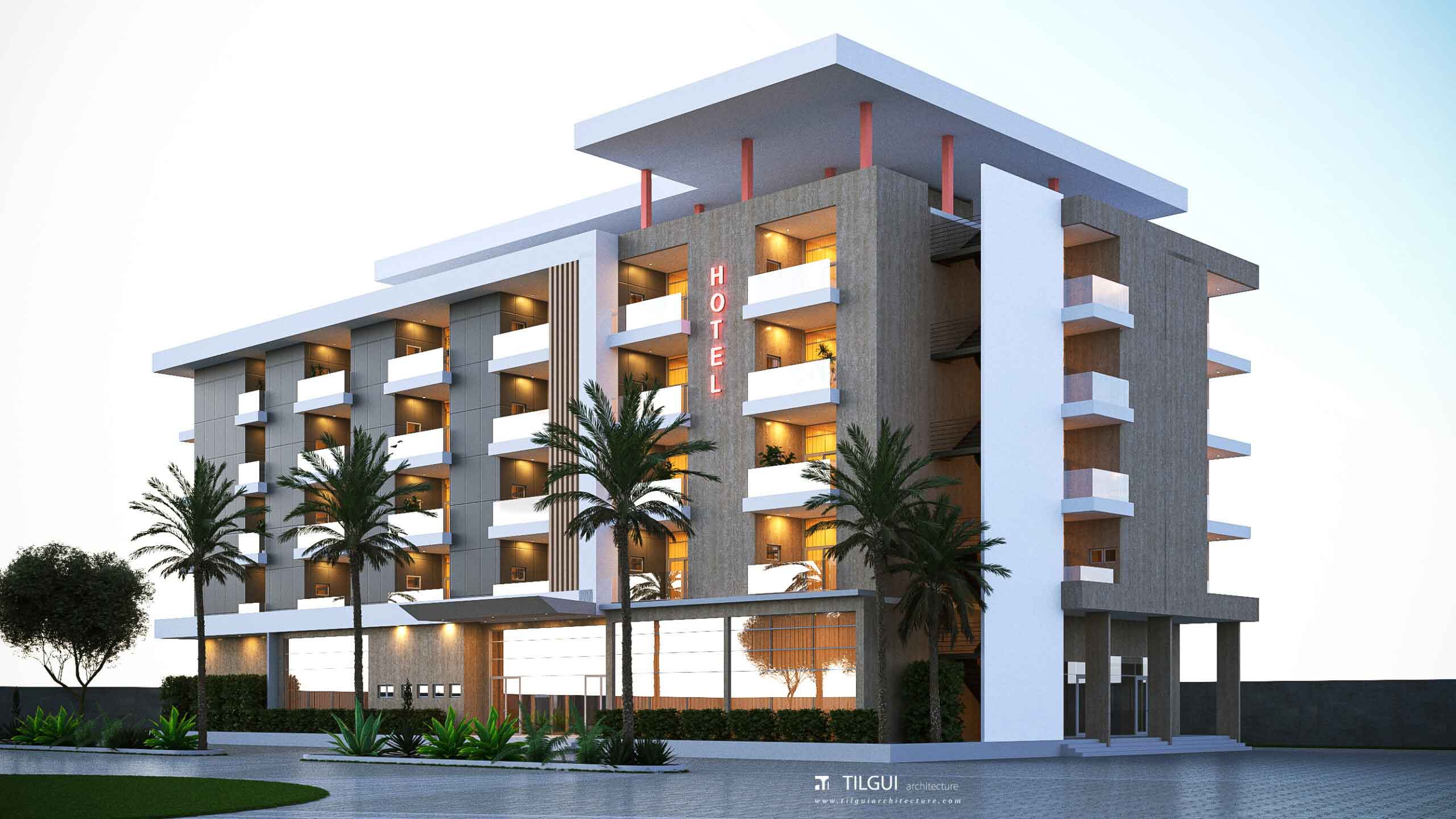 C’est un hôtel R+5 conçu par TILGUI ARCHITECTURE qui viendra s’intégrer dans un complexe hôtelier à Koubri, au Burkina Faso. Il apportera 95 chambres et 5 suites en plus au complexe. Au rez-de-chaussée, on retrouvera des commerces, deux salles de conférence et des services. Le dernier niveau offre une piscine et un restaurant-bar.